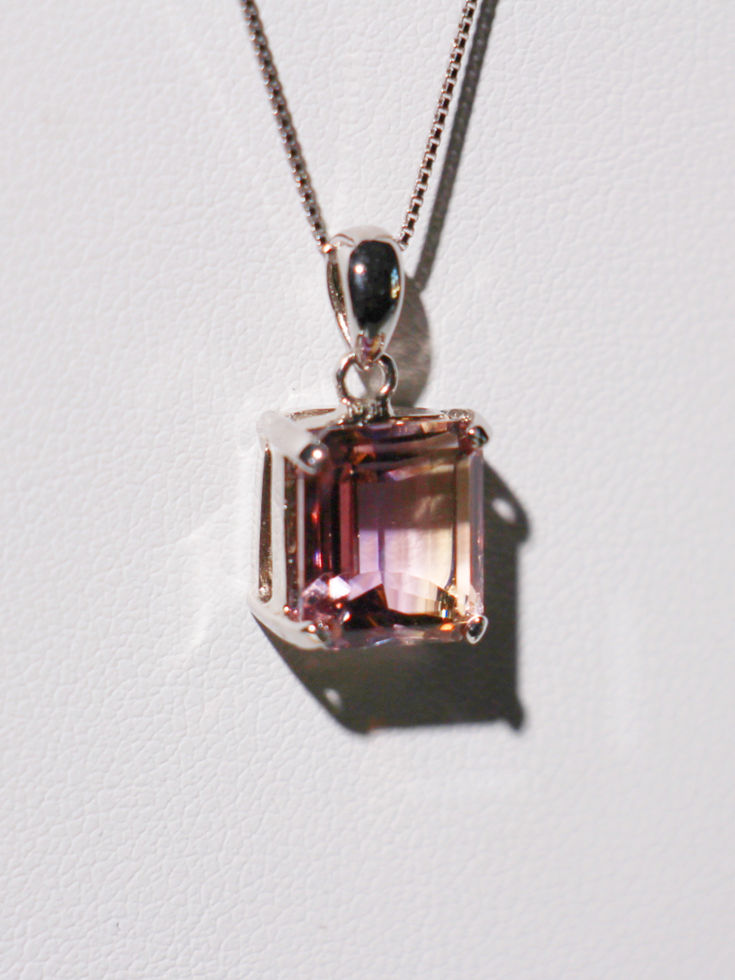 Ein kleiner Anhänger mit geschliffenem, echtem Ametrin, aus Uruguay. Vollsilber S925 Öse.