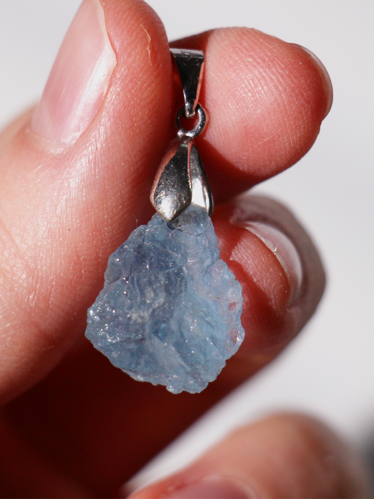Anhänger aus Aquamarin-Rohsteinen. Der Anhänger besteht aus Edelstahl.