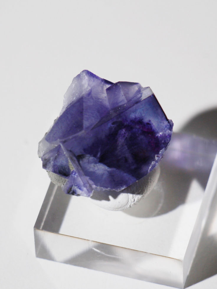 Ein kleiner Fluorit. Ein wunderschönes Cluster aus zwei ineinander-wachsenden Fluorit-Kristallen mit hellblauem Phantomen in blauer Matrix.