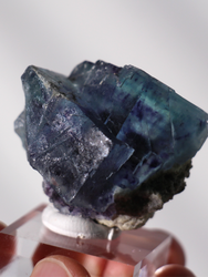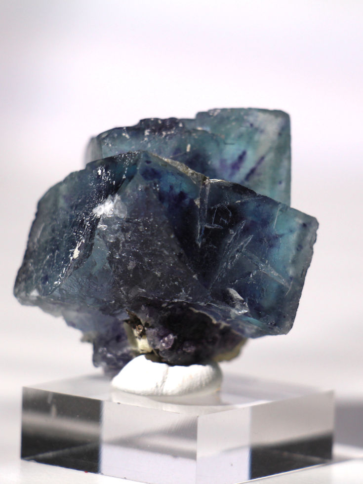Ein wundervolles Specimen aus Yindu, China. Blau-grün/violetter Fluorit-Zwilling, mit mehrfachen Phantomen und Bed-Formation. 41x44x34mm.