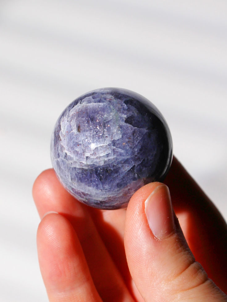 Eine mittelgroße Iolith-Kugel. Sehr homogen, mittlerer/feiner Flash.
