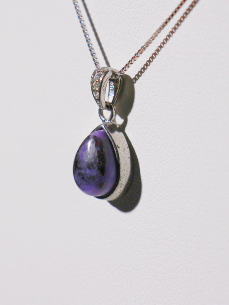 Ein kleiner Anhänger in Tröpfchen-Form aus Sugilit, aus Russland. Vollsilber S925 Öse.